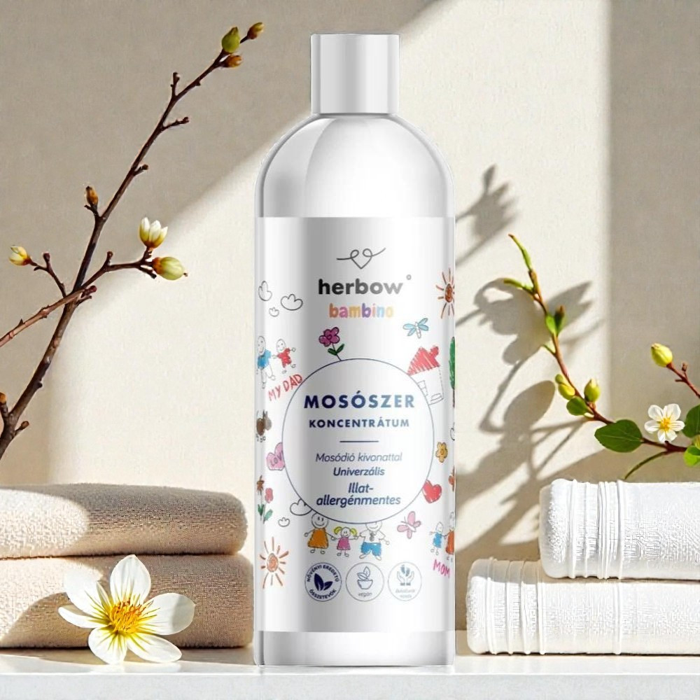 Az érzékeny bőrű és allergiára hajlamos kisbabák/gyermekek/felnőttek ruháinak tisztítására kifejezetten ajánlott Herbow bambino növényi eredetű folyékony mosószer koncentrátumaink kíméletes eljárással készült, különleges mosódió kivonatot tartalmaznak.