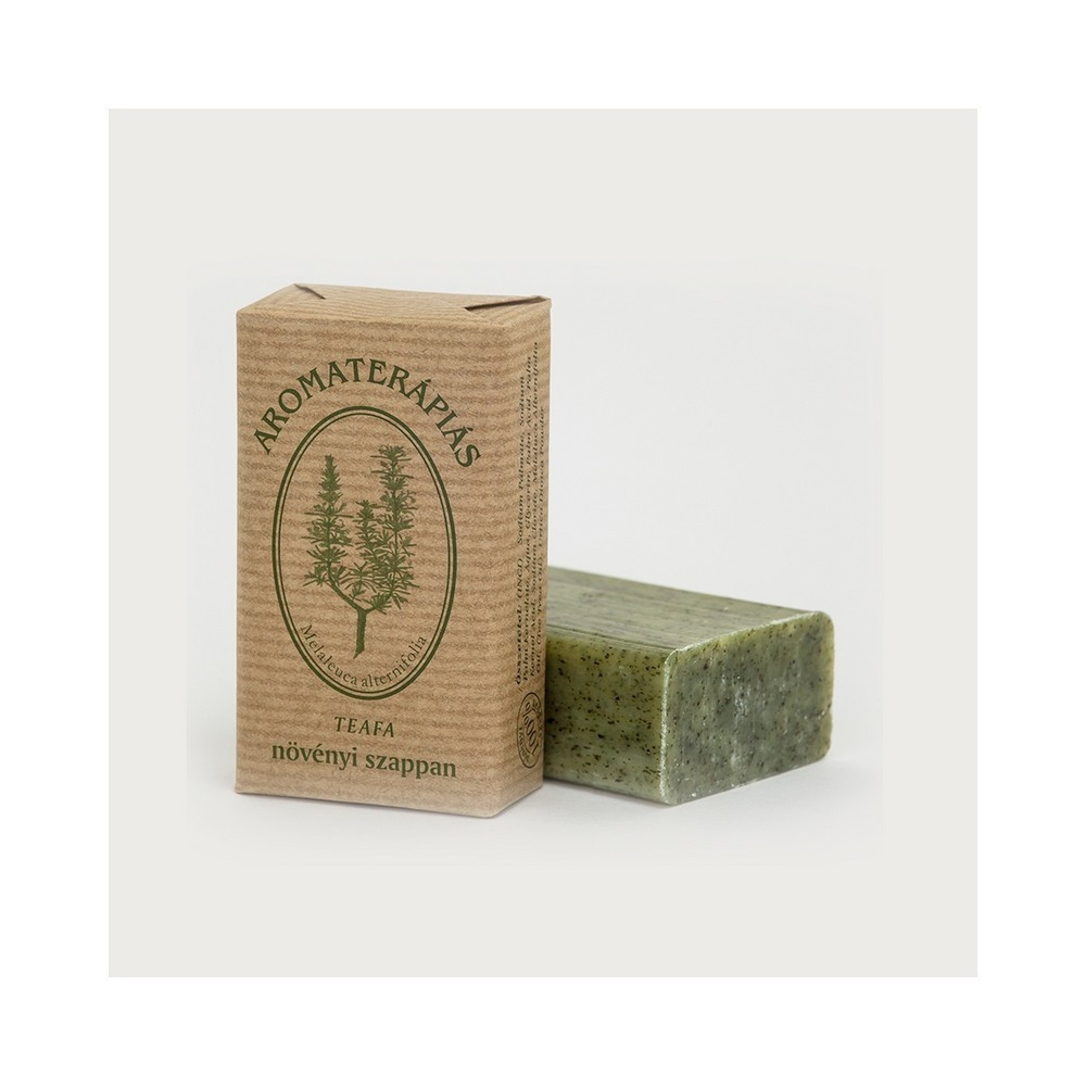 Mydlo s čajovníkom: farbené výťažkom z žihľavy. Esenciálny olej z čajovníka má mimoriadne silné antibakteriálne a antimykotické vlastnosti. Jemne a šetrne čistí, takže ho možno použiť aj na tvár. Vynikajúce na čistenie pleti náchylnej na akné, ekzémy a zápaly kože.