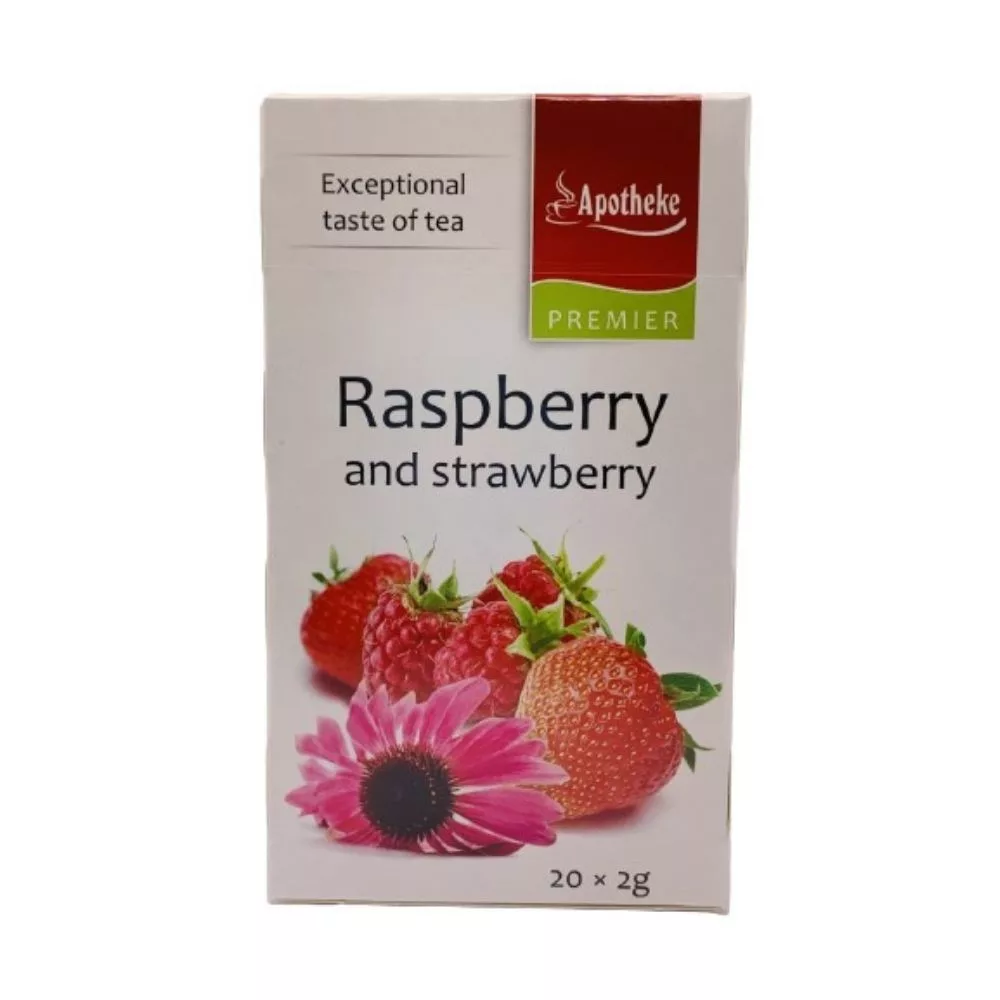 Az Apotheke - Eper és Málna Tea a Premier Selection sorozat része, amely kiváló minőségű összetevőire és harmonikus ízvilágára büszke. Ez a tea különleges keveréke az érett eper és a lédús málna természetes aromáinak, melyek együtt egy igazán frissítő italt alkotnak.